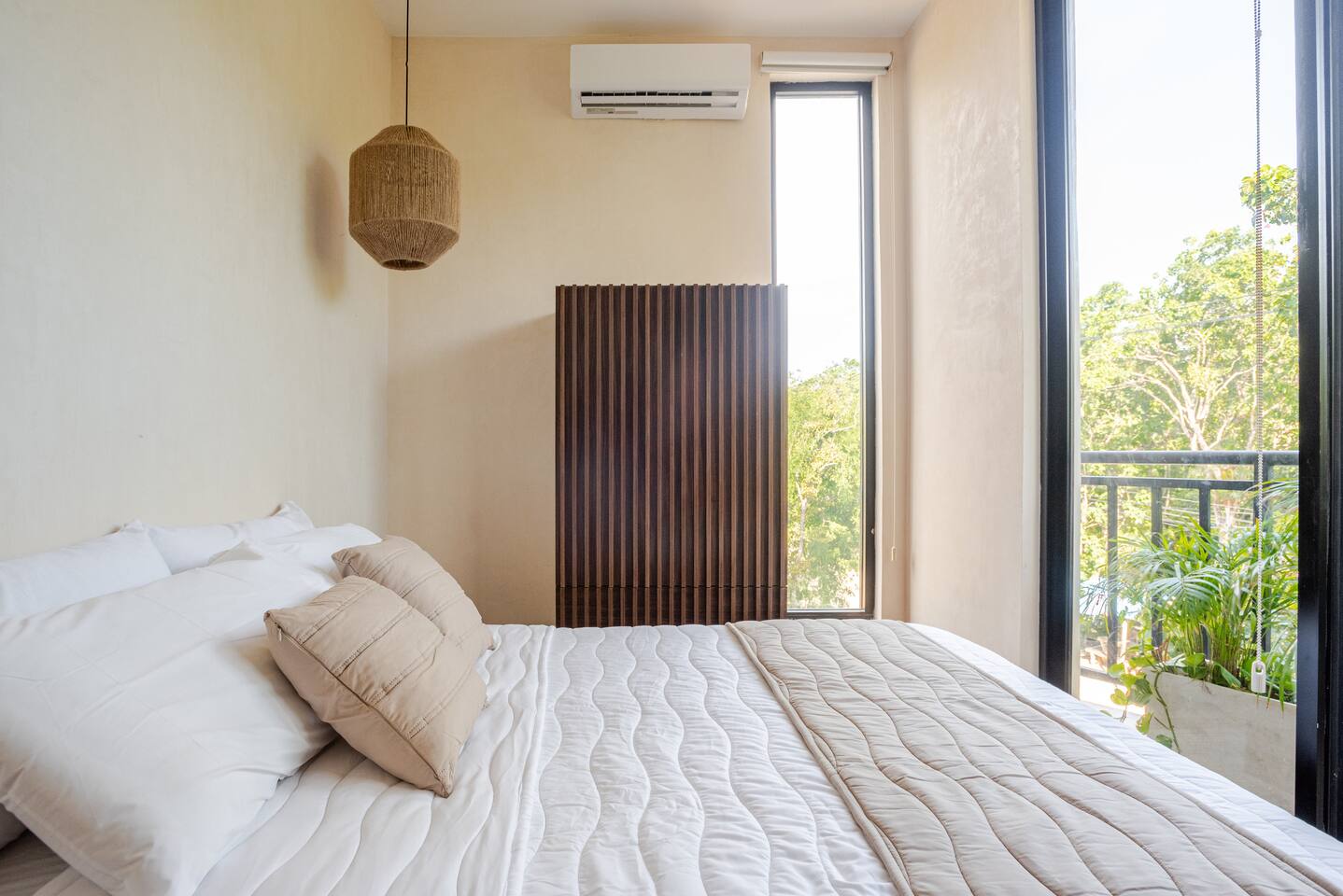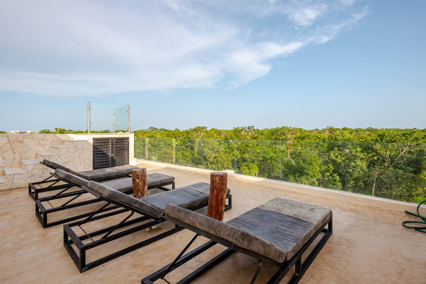 Exclusivo Penthouse de lujo en Tulum! 🌟 Este elegante y nuevo penthouse está diseñado para brindarte una experiencia de lujo, ideal para grupos de hasta 6 personas. Ubicado a pocos minutos de las hermosas playas de Tulum 🏖️, te ofrece el equilibrio perfecto entre confort, privacidad y estilo. Con 3 recámaras amplias y lujosas, cada una equipada con aires acondicionados y camas confortables para asegurar tu descanso, brindándote total comodidad y privacidad durante tu estancia.