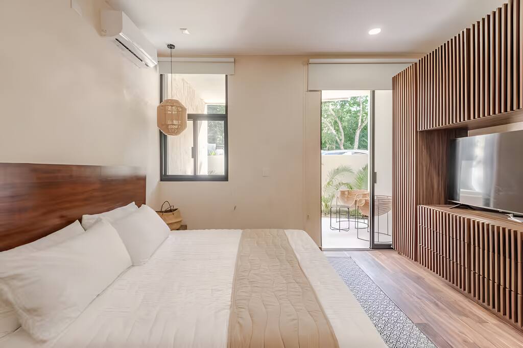 Descubre tu propio paraíso en Tulum: un estudio moderno con acceso al beachclub y 3 albercas (una rooftop con vista de ensueño). A solo 6 min de la playa, entre selva y confort. Cocina equipada, cama king, AC silencioso, wifi rápido. Disfruta gym, rooftop bar y acceso al resort. Perfecto para parejas que buscan romance, aventureros que aman la naturaleza o nómadas digitales que requieren inspiración. La mejor base para explorar Tulum y relajarte.
