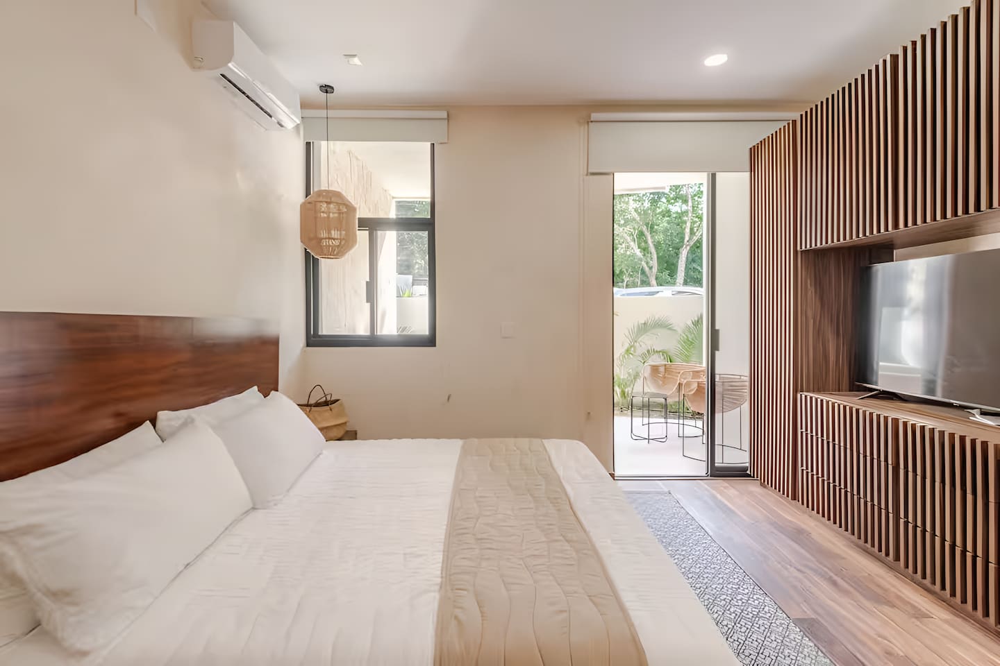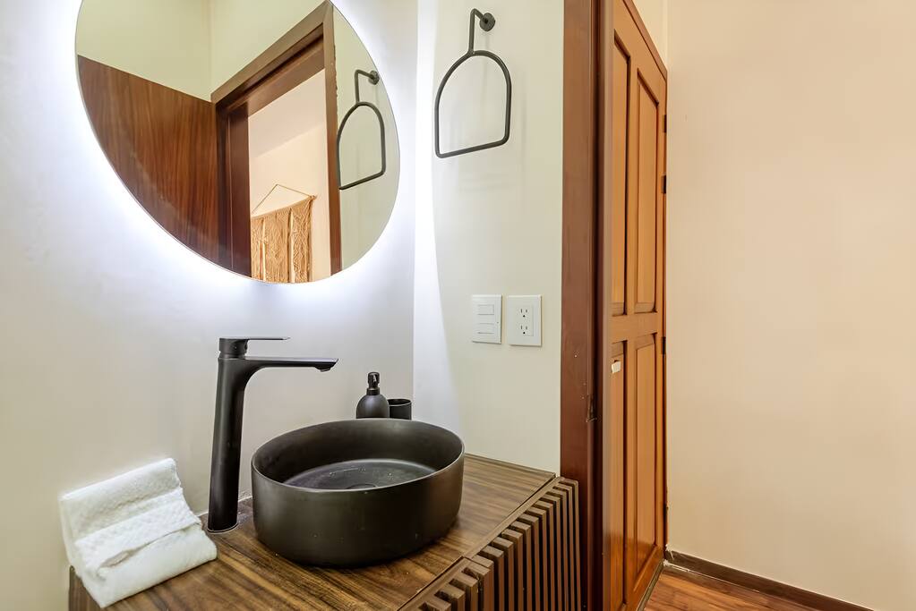 Escápate a este nido bohemio en Tulum: estudio chic a 6 min de la playa con acceso a albercas comunes, rooftop con vistas verdes y gimnasio. Cocina equipada, cama king, AC y wifi rápido. Ideal para parejas, viajeros solos o nómadas digitales. Ubicado en zona tranquila cerca de restaurantes, cafés y cenotes. Vive la magia de Tulum con estilo y comodidad.